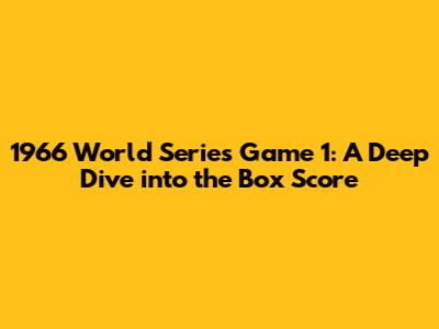 1966 World Series Game 1: A Deep Dive Into The Box Score