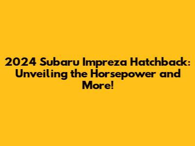 Hey car enthusiasts! Are you guys ready to dive deep into the world of the 2024 Subaru Impreza Hatchback? This awesome compact car has been making waves, and today, we're going to break down everything you need to know. We'll be focusing on one of the most exciting aspects: the horsepower! But hey, we won't stop there. We're going to cover specs, performance, features, and everything else that makes this hatchback a contender in the market. So buckle up, grab your favorite beverage, and let's get started!