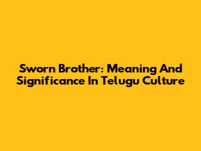 Sworn Brother: Meaning And Significance In Telugu Culture