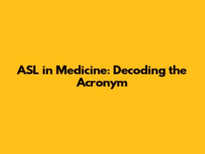 ASL In Medicine: Decoding The Acronym