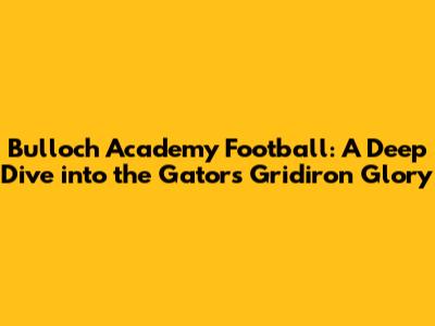 Hey sports fanatics! Ever heard of the Bulloch Academy Gators? If you're a fan of high school football, or even just a lover of thrilling games and community spirit, then you're in the right place. Today, we're diving headfirst into the world of Bulloch Academy football, exploring everything from the team's history and key players to their strategies and the impact they have on the local community. So, grab your jerseys, and let's get started! We're going to break down the essence of what makes this team so special, giving you the inside scoop on the Gators' gridiron journey.