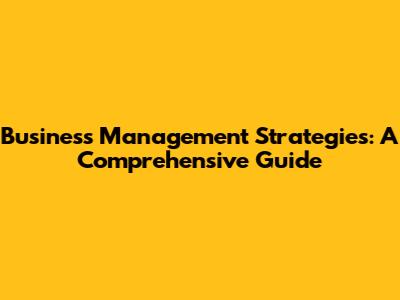 Business Management Strategies: A Comprehensive Guide