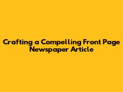 Front-page articles have the power to shape public opinion. By presenting information in a clear and compelling way, they can influence how people think about an issue or a person. They can raise awareness about important issues, mobilize public support, and even spark social change. The way in which the article is written plays a crucial role in forming these opinions.