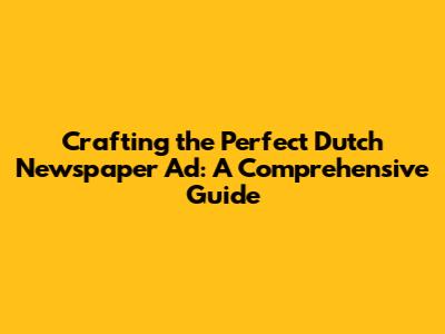 Crafting The Perfect Dutch Newspaper Ad: A Comprehensive Guide