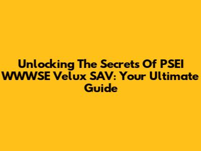 Unlocking The Secrets Of PSEI WWWSE Velux SAV: Your Ultimate Guide