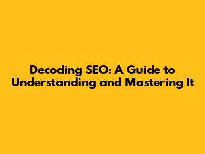 Decoding SEO: A Guide To Understanding And Mastering It