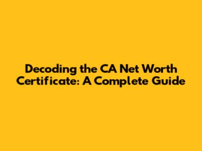 Hey guys! Ever heard of a CA Net Worth Certificate? If you're dealing with finances, investments, or loans, chances are you've bumped into this term. But what exactly is a CA Net Worth Certificate, and why is it so important? Let's break it down, making sure we cover everything you need to know, from understanding its purpose to how to get one. This guide will be your go-to resource, so buckle up!