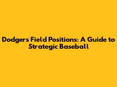 Dodgers Field Positions: A Guide To Strategic Baseball
