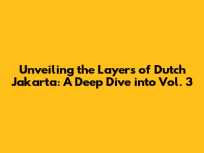 Unveiling the Layers of Dutch Jakarta: A Deep Dive into Vol. 3