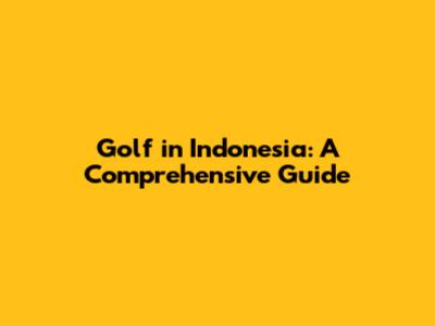 Golf In Indonesia: A Comprehensive Guide