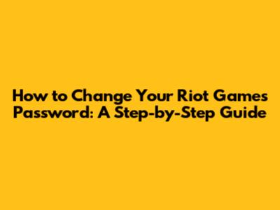 How To Change Your Riot Games Password: A Step-by-Step Guide