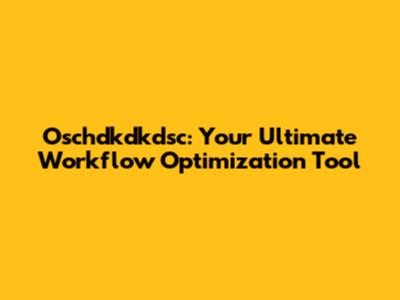 How To Optimize Your Workflow With Oschdkdkdsc