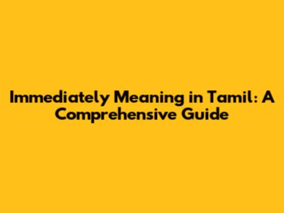 Hey guys! Ever found yourself in a situation where you needed to know the exact Tamil meaning of "immediately"? Well, you're in the right place! This guide breaks down everything you need to know about understanding and using the Tamil equivalents of "immediately" like a pro. We'll dive deep into various translations, contextual usages, and even some cool examples to make sure you've got it all down pat. Trust me, by the end of this article, you'll be throwing around these Tamil words with confidence!