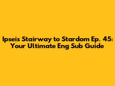 Hey everyone! Are you ready to dive deep into the world of Ipsei's Stairway to Stardom Ep. 45 with English subtitles? This episode is packed with drama, laughs, and those oh-so-important character developments we all crave. So, grab your snacks, get comfy, and let's break down everything you need to know about this fantastic episode. We'll explore where you can find those coveted English subtitles, discuss some key plot points, and maybe even speculate a little about what's coming next. This episode is a rollercoaster of emotions, and finding the right subtitles is key to enjoying every moment. So, let's get started, shall we? You'll find yourself completely immersed in the story and the characters, feeling like you're right there with them as they navigate their dreams, challenges, and heartbreaks. Understanding the nuances of the dialogue is crucial, and with the help of high-quality English subtitles, you won't miss a beat. We are talking about understanding those inside jokes, picking up on the subtle clues, and fully appreciating the acting and storytelling. Let's make sure you don't miss any of it, right? It's all about making sure you can connect with the story on a deeper level. You'll understand the characters' motivations, feel their emotions, and follow the plot twists with clarity. It’s like getting a backstage pass to the show and allows you to enjoy every aspect. So, come with me, and together we’ll make sure you get the most out of Ipsei's Stairway to Stardom episode 45, ensuring that every viewing is an amazing experience.