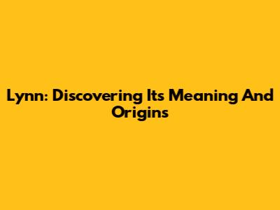 Lynn: Discovering Its Meaning And Origins