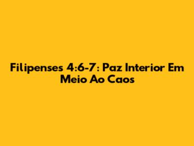 Filipenses 4:6-7: Paz Interior Em Meio Ao Caos