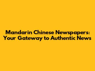 Mandarin Chinese Newspapers: Your Gateway to Authentic News