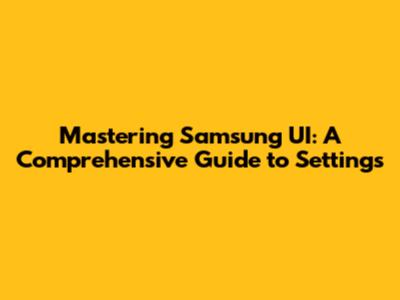 Mastering Samsung UI: A Comprehensive Guide To Settings