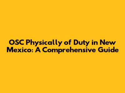 Hey everyone! Are you curious about the OSC Physically of Duty in the beautiful state of New Mexico? Well, you're in the right place! We're going to dive deep into what this all means, covering everything from the basics to some of the nitty-gritty details. Whether you're a New Mexico resident or just interested in learning more, understanding the OSC Physically of Duty is super important. We will uncover what it is, why it matters, and how it impacts people in New Mexico. So, grab a coffee (or your favorite beverage), sit back, and let's get started. This is going to be a fun and informative ride, packed with useful info and insights. Ready? Let's go!