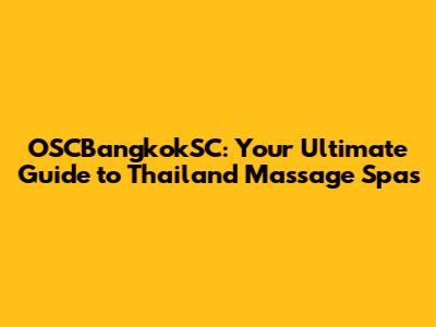 Hey guys! Are you ready to dive into the world of OSCBangkokSC and discover the best Thailand massage spas? You're in the right place! We're going to explore everything you need to know about finding the perfect massage experience, from traditional Thai massages to relaxing spa treatments. Let's get started and make your next trip to Thailand truly unforgettable. Buckle up, because we're about to embark on a journey filled with relaxation, rejuvenation, and the incredible world of Thai massage. Whether you're a seasoned spa-goer or a curious newbie, this guide has something for everyone. We'll explore the best spas in Bangkok, discuss different massage types, and give you tips to ensure you have an amazing time. So, grab your virtual passport and let's go! Our goal is to make sure you're well-informed and excited about experiencing the best that Thailand has to offer in terms of relaxation and well-being. This guide is your ultimate resource for planning your spa experience. So, let’s get into it and discover what makes OSCBangkokSC and Thailand's massage scene so special.
