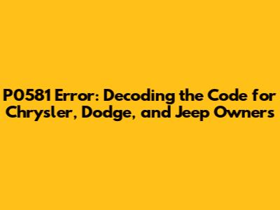 Hey there, fellow car enthusiasts! Ever seen that pesky Check Engine Light pop up on your dashboard? It's never a fun sight, but if you've got a Chrysler, Dodge, or Jeep vehicle and you're seeing the error code P0581, then you're in the right place. This article is your go-to guide for understanding and tackling this specific issue. We're going to break down what the P0581 code means, what causes it, how to troubleshoot it, and what you can expect in terms of repairs. So, grab a coffee, and let's dive into the details! We'll make sure you understand everything about the P0581 error code, and we'll keep it simple, straightforward, and easy to follow. Because let's face it, dealing with car problems can be stressful, so we're here to help make it easier.
