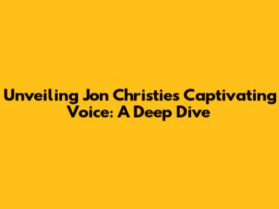 Unveiling Jon Christie's Captivating Voice: A Deep Dive