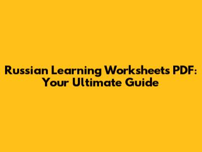 Maximizing Your Learning with Russian Worksheets PDF