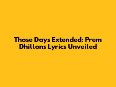 Those Days Extended: Prem Dhillon's Lyrics Unveiled