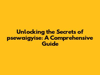 Unlocking The Secrets Of Psewaigyise: A Comprehensive Guide