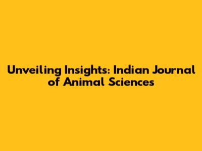 Unveiling Insights: Indian Journal Of Animal Sciences