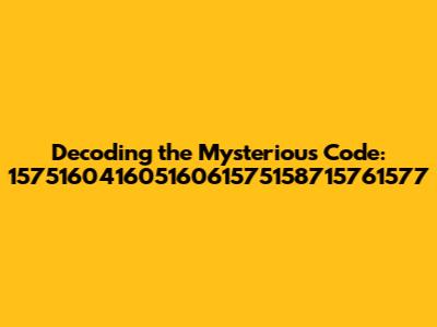 Hey guys! Ever stumble upon a sequence of numbers that just screams mystery? Well, that's exactly what we're diving into today with the enigmatic code: 15751604160516061575158715761577. This isn't just a random string of digits; it's a puzzle, a cipher, maybe even a secret message waiting to be deciphered. We're going to break down what this could potentially mean, and explore different possibilities of what it could be. Buckle up, because we're about to go on a digital treasure hunt!