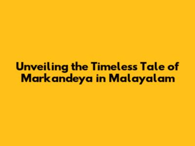 The Essence of the Markandeya Story in Malayalam: A Glimpse into Immortality