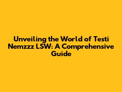 Unveiling The World Of Testi Nemzzz LSW: A Comprehensive Guide