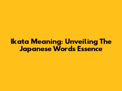 Ikata Meaning: Unveiling The Japanese Word's Essence