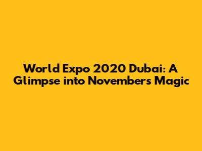 Hey everyone! Let's talk about something truly epic that took place: the World Expo 2020 in Dubai, United Arab Emirates. This massive global event, which kicked off in late 2021 (though branded as 2020 due to the pandemic), was an absolute blast, and we're going to dive deep into what made the month of November so special. If you were lucky enough to attend or even just followed the buzz, you know it was a period packed with innovation, culture, and unforgettable experiences. We're talking about a place where the world came together to showcase its best, and November was right in the thick of it, bringing some seriously cool vibes and events. Get ready, because we're about to unpack all the awesome stuff that happened!